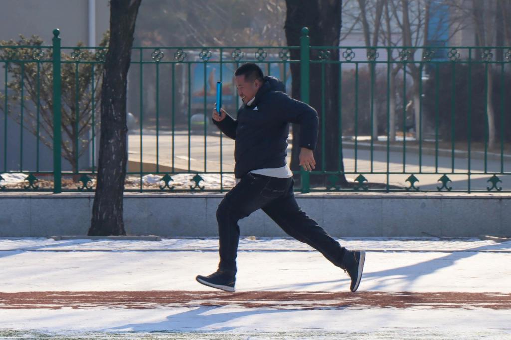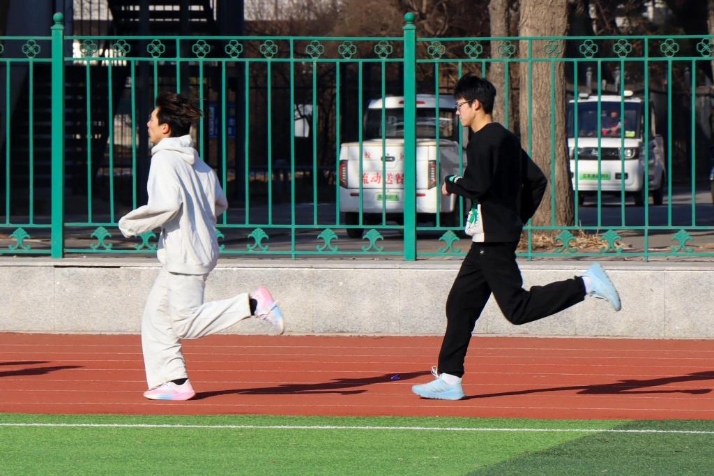 中午12点,随着潘雪峰老师宣布活动开始,同学们从起点线开跑。他们的步伐轻盈,目标明确,彰显出青春的活力和对历史的尊重。场地上除了有员工们矫健的身姿,老师们也积极参加进来,与同学们一起完成了129米接力跑项目。